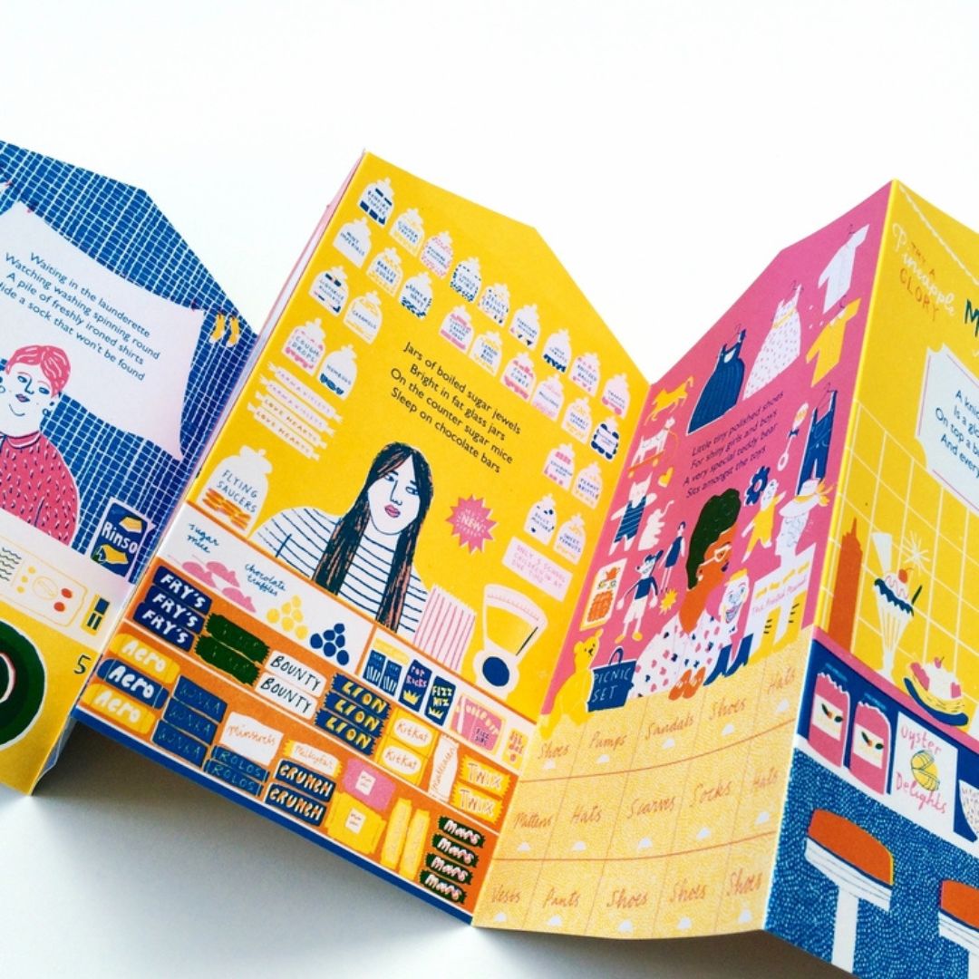 It is a celebration of those wonderful High Street shops that are about to disappear. Laundrettes, Children's outfitters, The Hardware Store, all slowly vanishing. The concertina book is a remarkable 139cms long, and 23.5cms in height and features a High Street of 10 different panels of shops, ice-cream van and Telephone Box. It is printed using 'old-fashioned' spot lithography on quality card. On the reverse of the High Street you can see inside each shop, where each owner proudly displays their wares. Influenced by the French Children's books of the 1930s this is a brilliant contemporary twist on Eric Ravilious' 1938 High Street.